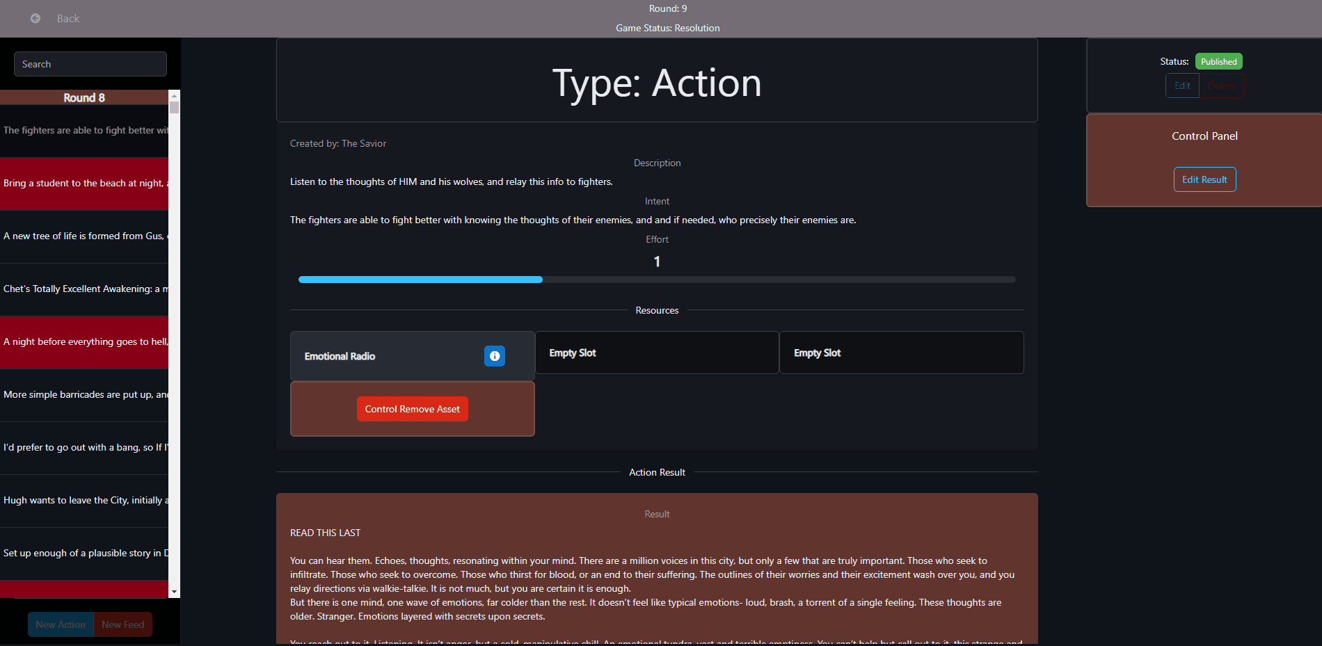 An online game takes the "traditional" one day megagame experience and moves it online, with players using online tools like Discord, Miro or Google Sheets